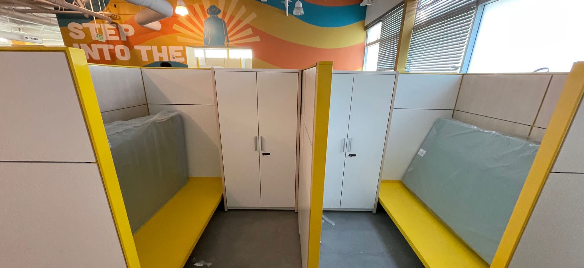 Gebesa Sleep Modules are a cost-effective way to provide sleep accommodations for temporary, transitional & permanent furnishing solutions for colleges, goverment living quarters, supportive housing, and shelters. Gebesa has provided over 2,000 sleep modules through the Bridge Home project in Los Angeles, St. Vincent de Paul, and The Midnight Mission designed in collaboration with Gensler.